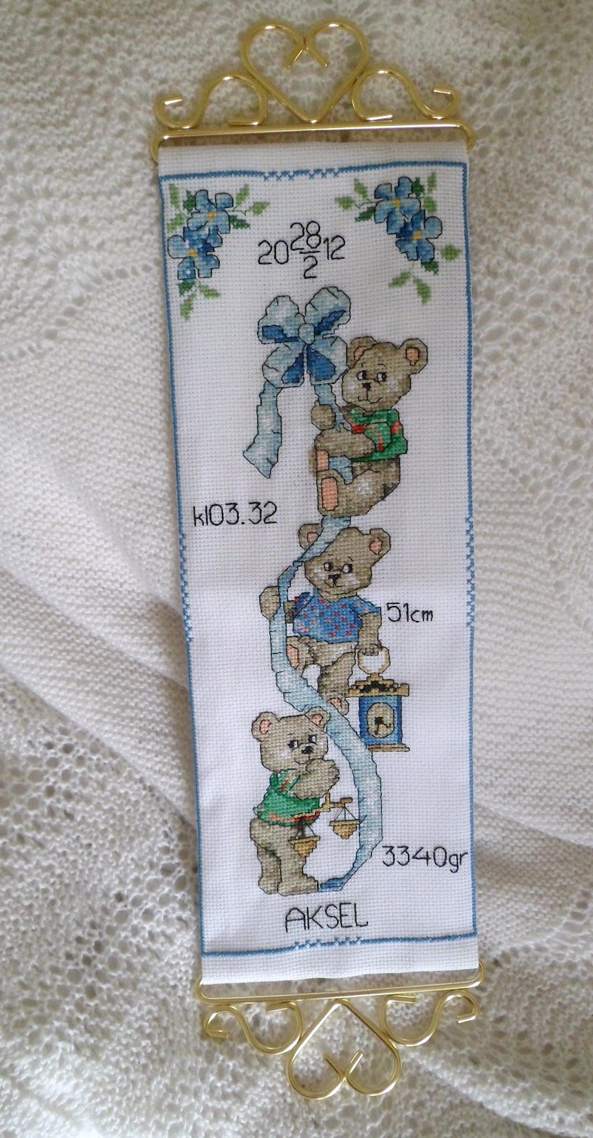 Alle børn der er døbt i kjolen har fået deres navn broderet derpå. Aksels navn skal selvfølgelig også derpå, som barn nr. 48!